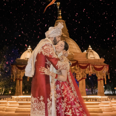 So when it came to envisioning her big day, celebrations inspired by Mani Ratnam’s movies and Oscar-winning musician AR Rahman’s compositions felt like a natural fit. The bride decided to bring her cinematic vision to life with a ceremony at Seavoy House, Kuala Lumpur. The bride’s former experience as an architect made wedding planning and designing all events a breeze “as I immediately got to planning mode. Iswaran and I planned our big day alongside our army of friends and family, and we whole heartedly enjoyed every step of the process.”
