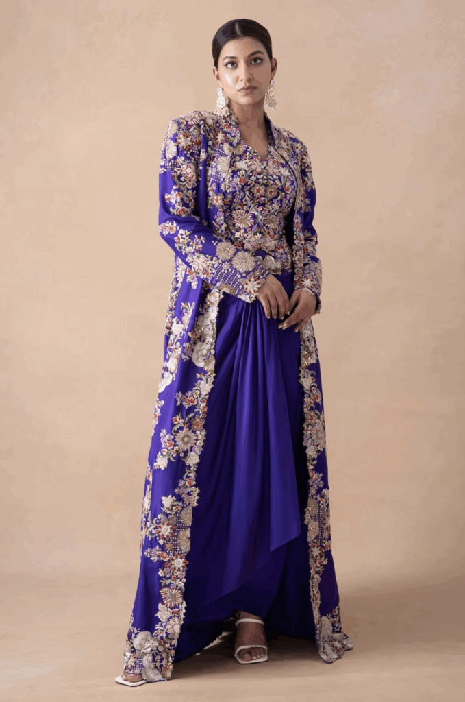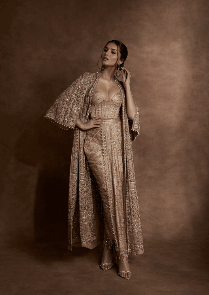 Jackets are back, adding a layer of sophistication, depth and warmth to your wedding look. longer just functional, they’ve become statement-making additions to Indian occasion wear. The best cover-ups are ones you can wear repeat and re-style with other pieces in your closet. From long, embroidered trench-style jackets that sweep the floor with regal flair and cropped boleros that spotlight your waist when wearing a lehenga to sharply tailored blazers that blend structure with sensuality, there’s a silhouette for every mood and moment. You can style your jacket open over a lehenga for effortless layering, belt it for definition or drape it over a sari for a fusion twist. The key is balance. Let your jacket do the talking, while keeping jewellery and makeup minimal for a look that’s polished and versatile.