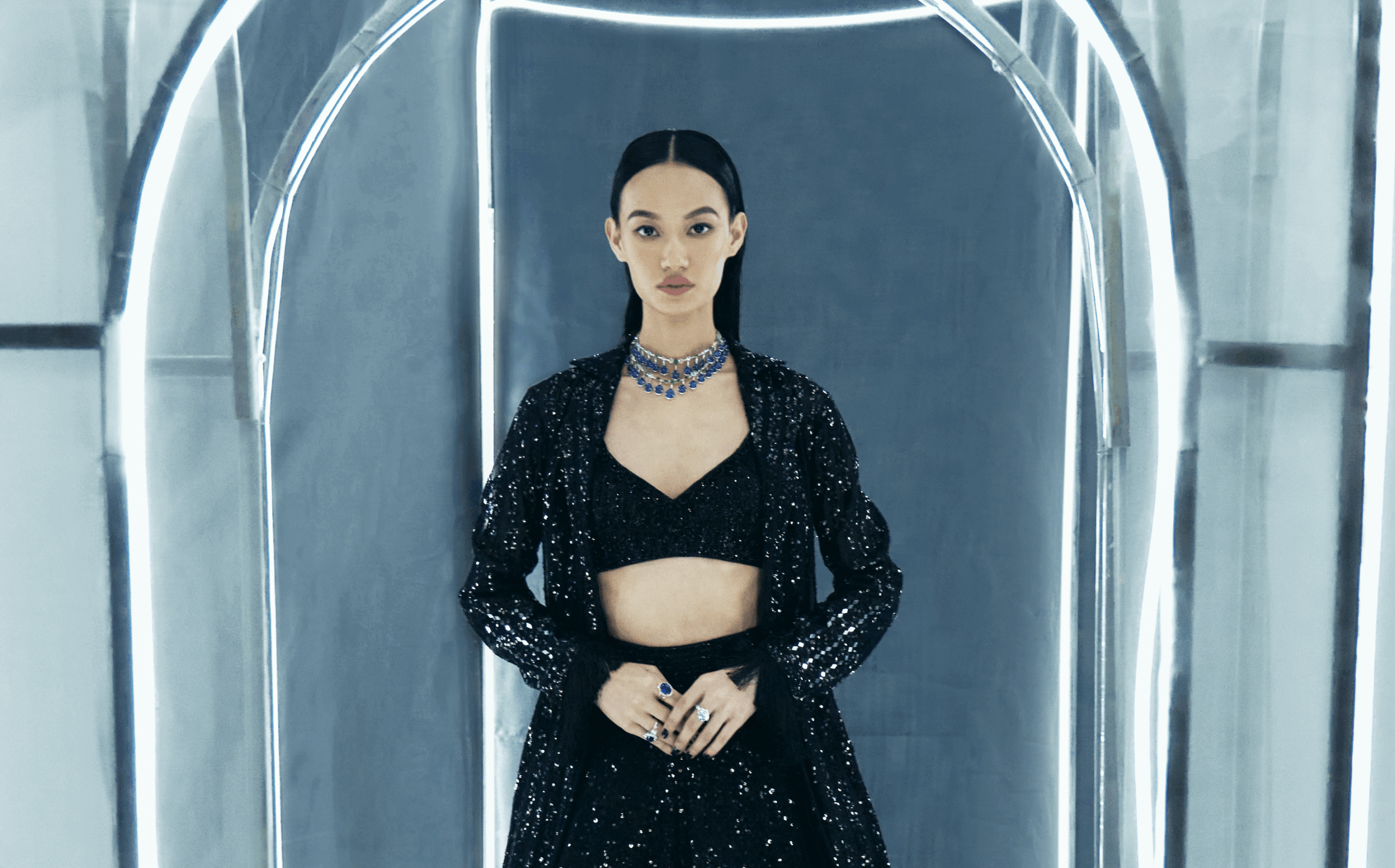 The easiest way to withstand cold temperatures, wind and snow is full-sleeved outfits. Want to hark the Medieval Era? Consider exaggerated bell sleeves or the Bishop style, both add drama and movement. Long, fitted sleeves are show-stopping option that exude modern minimalism and versatility. From classic blouse with a lehenga to ethereal anarkali, there is an abundance of long-sleeve choices of silhouettes for every style and body type. Beyond warmth, full sleeves also offer full coverage for those who prefer modesty or favour a dramatic and regal bridal look. For added practicality, detachable sleeves make a clever addition, allowing you to adapt your look from ceremony to celebration seamlessly. Abhinav Mishra’s latest couture outing, The Shrine is replete with several options.