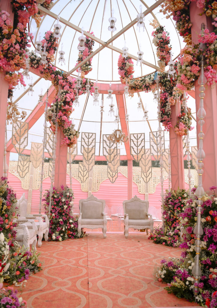 A striking floral wall, a statement mandap or a subtle phoolon ki chaddar, add a punch to your celebration with pink. But it is not as much about aesthetics as it is about emotions. Pink signifies love, joy, softness and femininity. Besides blooms, airy fabrics and sleek accent pieces will elevate the space without overwhelming it, creating a serene and sophisticated atmosphere where every detail is deliberate yet effortless. Whether your venue is a garden, a lakeside or a banquet, pink blooms can be artfully arranged to create a lush, nature-inspired haven. Eye-catching décor pieces and sleek furniture in pink can dramatically transform the setting of your celebration.