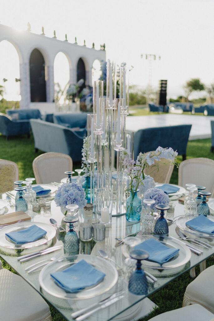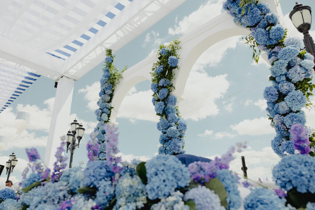 From powder and periwinkle to navy and midnight, blue makes for a serene yet striking monotone palette that feels both timeless and modern. Often associated with calm, depth, and devotion, it’s a refreshing choice for weddings that want to move away from conventional warm tones. Imagine drapes in sheer azure, floral clusters of hydrangeas, delphiniums and cornflowers, and soft furnishings in velvet and silk—all blending to create a dreamscape that’s soothing yet statement-making. Blue lends itself beautifully to both beachfront celebrations and evening soirées under the stars, offering endless ways to play with light and shade.