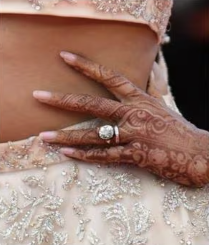 When businessman Rahul Sharma popped the question to Bollywood actress Asin Thottumkal, he made sure the sparkle was unforgettable. The 20-carat solitaire ring, reportedly valued around INR 6 crore (US$720,000) at the time. The diamond was specially imported from Belgium and mounted on a diamond-studded platinum band. Ingeniously, the ring carries the couple’s initials “AR” (for Asin and Rahul) under the stone and even bears a personal message from Rahul engraved on the band itself.