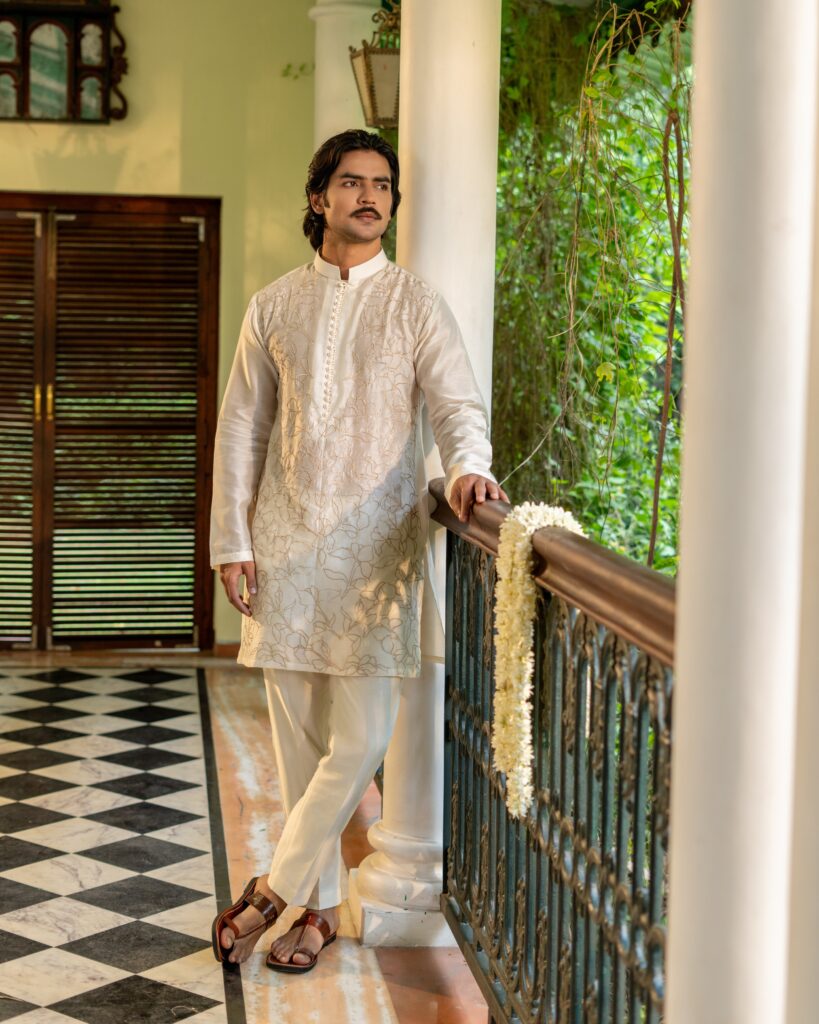 Ivory has long been a go-to for grooms, making Pantone’s Colour of the Year 2026 shade especially good news. The colour suits every mood: a classic sherwani for the wedding, a playful bundi set for the mehndi, an ivory bandhgala for the sangeet and a sharp suit for the reception. For experimental grooms, ivory at evening events feels particularly striking, modern and different.