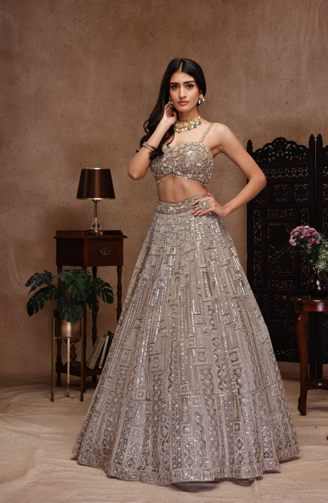 When it comes to bridal trousseaux, there’s more room than ever for a bride to have fun and truly diversify her wardrobe. While traditional pieces often anchor the pheras, vibrancy defines the mehndi and restraint suits the haldi. It is at the sangeet and cocktail nights where glamour takes centre stage. Enter the ultra-glam cocktail lehenga that is designed for drama, movement and sparkle. From crystal embellishments and cutdana detailing to glass beads and shimmering KiraKira work, these lehengas are meant to glint under lights, move with the music and let the bride dance the night away, uninhibited and unforgettable.