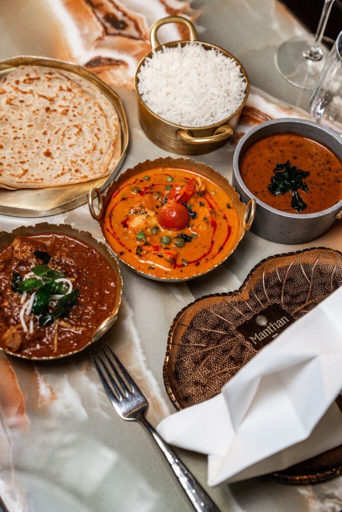 Manthan also caters beautifully to different palates and preferences. From the Charita Signature tasting menu to the Pavitra Vegetarian option, you can experience multiple regions on a single table. Vegan, gluten-free and custom requests are handled with ease, making it inclusive without ever feeling compromised.