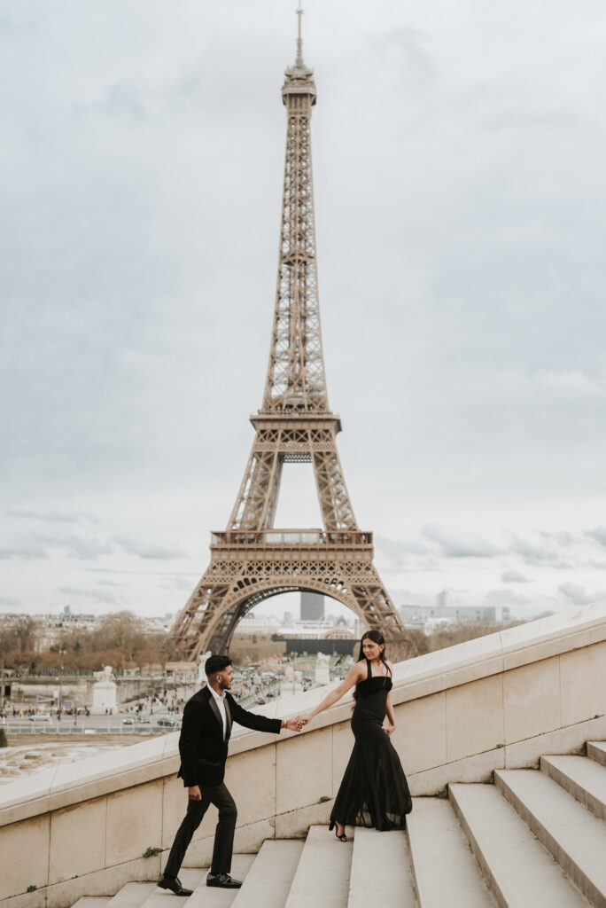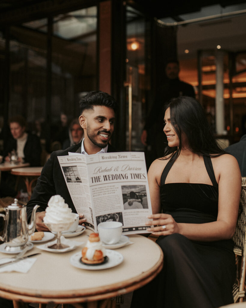 The Engagement a week later honoured Darren’s heritage, beginning with a church blessing before moving to the main celebration. Traditional chenda drummers transported everyone to Kerala. The large arch-shaped prints from the couple’s Paris pre-wedding shoot became focal points. “Seeing our Paris photos blown up into huge arches made me emotional in a way I didn’t expect. It was like watching two chapters of our story overlap,” Rubab remembers.