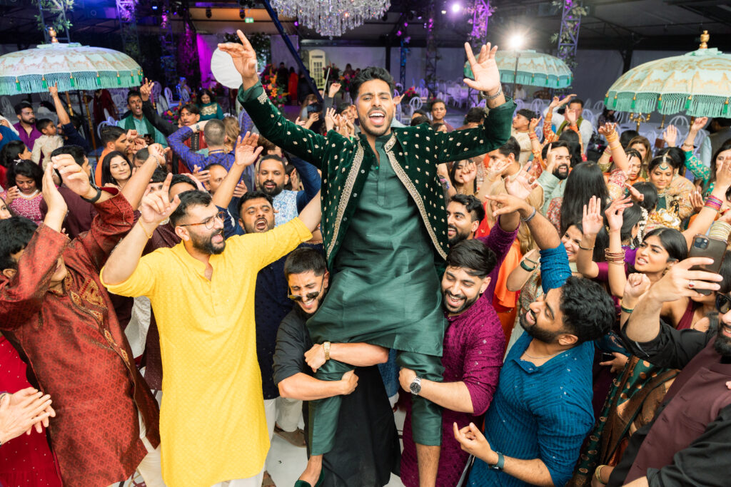 The Mehndi on May 24 at The Glass Marquee in Blackburn served as the perfect start to the wedding weekend. Guests participated in a blessing ritual, placing leaves and henna on the couple’s hands. Darren made his entrance with groomsmen breaking into bhangra, while Rubab’s entrance featured her bridesmaids lining the aisle as her brother held a chaddar above her head.