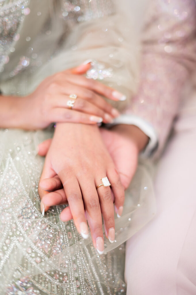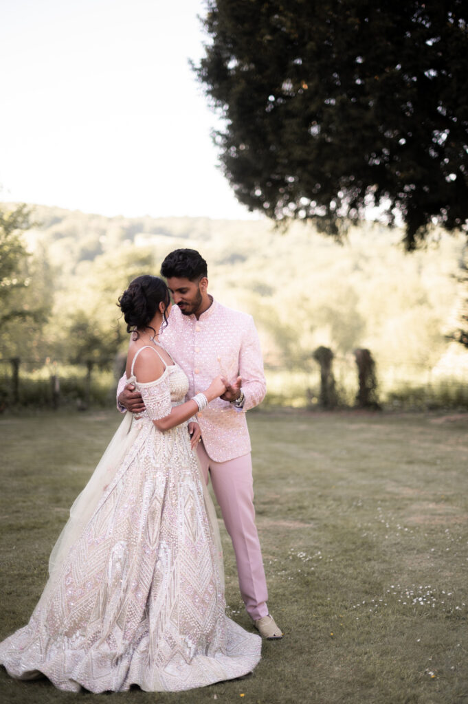 Despite their different cultural backgrounds, their shared values around family and faith created a strong connection. Within months, Darren faced the traditional “locked-door interview” with Rubab’s parents. “Needless to say, he came out alive, and from that moment on, our bond only grew stronger,” she laughs. The proposal came in April 2024, thoughtfully orchestrated with Rubab’s sisters who helped Darren design a bespoke engagement ring through a London jeweller. Set in a charming white wooden pavilion overlooking peaceful countryside, their siblings and close friends watched discreetly from a nearby bar as the moment unfolded. The couple knew they didn’t want a long engagement, deciding to marry the following May.