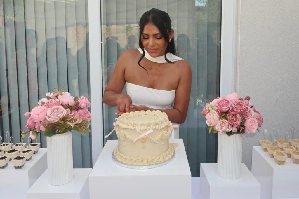 May 10 brought colour and nostalgia together. Inspired by a traditional mela, the celebration featured childhood treats like Kurkure and Parle-G biscuits, with bangles and fragrant gajre in customised gift bags. “My mum helping me with the fresh-flower jewellery, the smell of the roses, the softness of the whole morning, it felt like stepping into a memory I’d imagined since childhood,” Rubab reflects. She wore a modern draped sari paired with a multicoloured blouse from Pernia’s Pop-Up Shop.