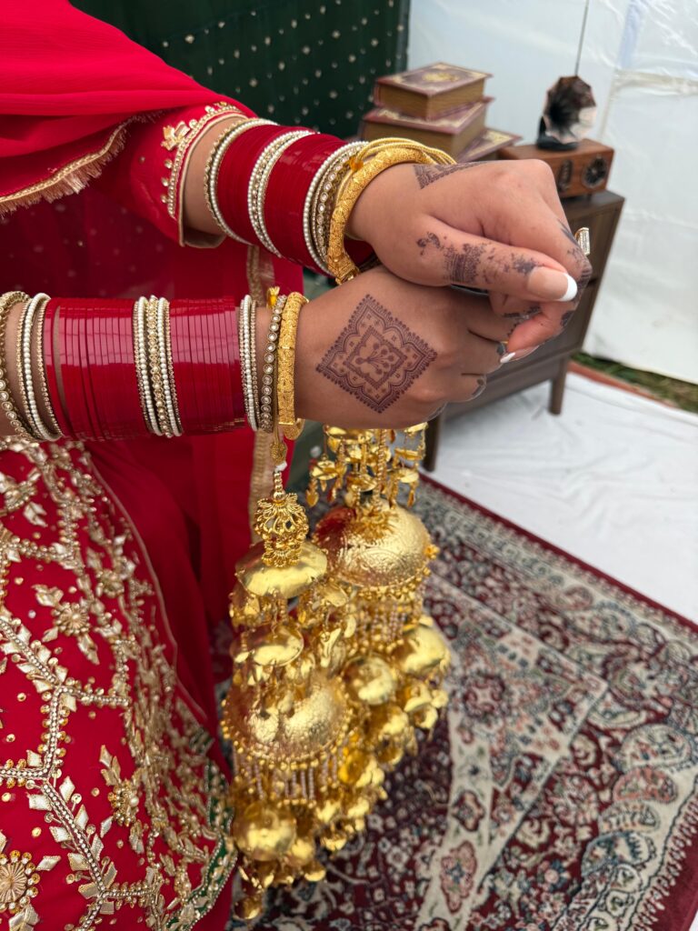 The ceremonies on the next day brought raw emotion. Held at home, Rubab’s parents placed the chunni over her head, while her uncles adorned her with the choora. “That was the first time I cried, feeling the bittersweet pain that I was not going to be sleeping in my childhood bedroom from tomorrow.” She wore a classic red Punjabi suit with a small parranda for the ceremony.