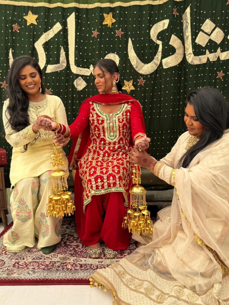 Planning 10 events brought real challenges. “One of the biggest challenges was the sheer scale of planning ten events,” Rubab admits. Work commitments meant her sister and mother travelled to Lahore to source authentic pieces for ceremonies, designing wedding cards over FaceTime while Rubab was at the office. “It was 24/7 project for one whole year.”
