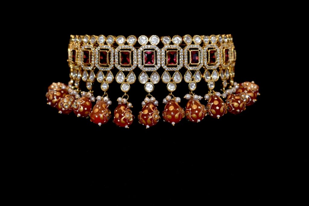 Necklace is the crowning jewel of every bridal accessory look. Among the many necklace choices, spanning haars and pendants, chokers are perennial and a bridal favourite for good reason. Rooted in heritage yet endlessly reinvented, a choker frames the face and elevates the ensemble. From sunlit mehndi mornings to the gravitas of the wedding ceremony and the glamour of the reception, a choker transitions seamlessly across celebrations. Whether steeped in tradition or styled with a contemporary twist, it brings balance, drama, and polish.
