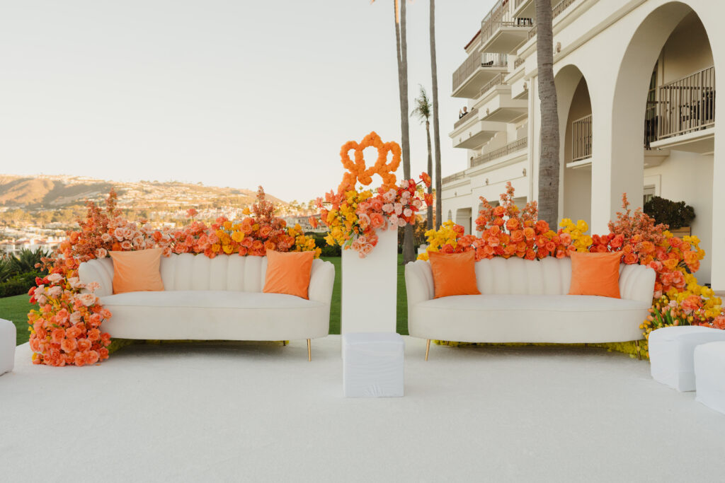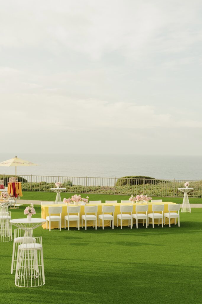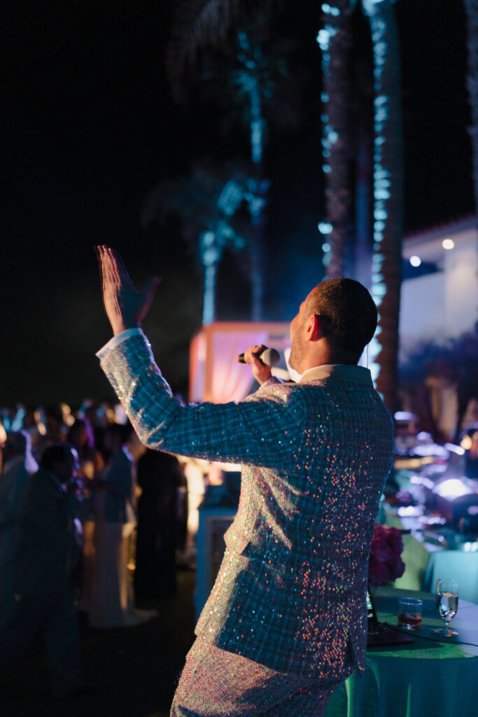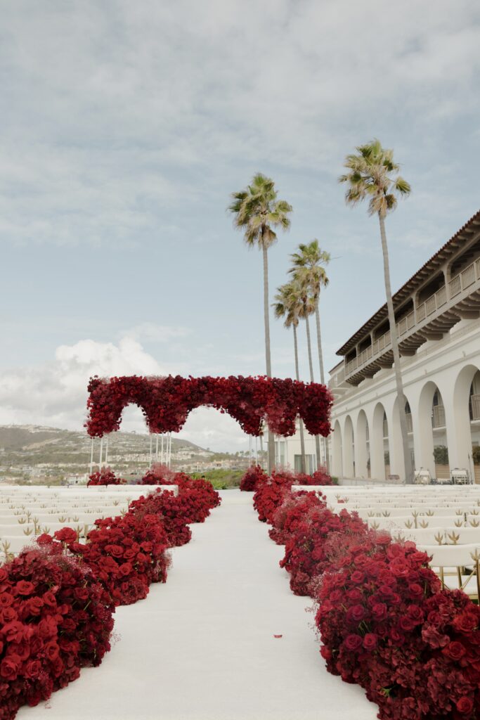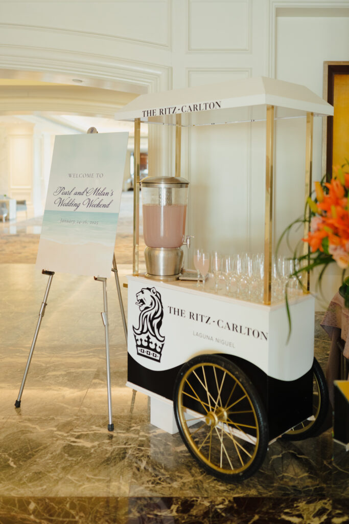 Two years before their January 2025 wedding weekend, planning began. “From the start, I had a clear vision for our wedding. I wanted it to feel less like singular events and more like a fully immersive experience—an unforgettable escape where every detail reflected who we are,” Pearl shares. With 400 guests invited to California, intimacy meant emotional closeness rather than numbers. They chose The Ritz-Carlton, Laguna Niguel in California for its panoramic ocean views. “Our guests were the only ones on the property,” Pearl says. “It made the weekend feel completely immersive.” As lovers of travel, the setting reminded them of Santorini and the Amalfi Coast.