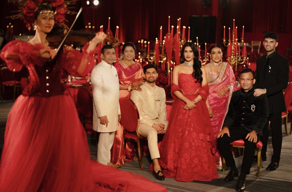 The evening’s ‘Cartier Love Affair’ wedding dinner unfolded in crimson and candlelight. Pearl changed into a red Mishru ensemble with a corset blouse, Milan into a white Tarun Tahiliani bandhgala with a custom brooch. Rex D’Souza serenaded them unexpectedly with ‘Tum Hi Ho’ from Aashiqui 2. “How did he choose this song? This is insane!” Pearl remembers asking. The coincidence felt fated.