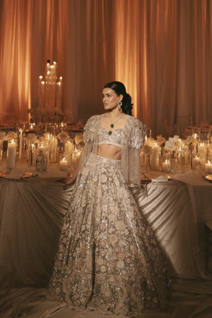 When I ask them about their favourite moment, Milan answers without hesitation. “The first look. I hadn’t seen Pearl in her wedding lehenga before our first look, and the moment I turned around, I was completely breathless.” For Pearl, it was the event reveals. “Until that moment, everything had existed only on paper. Seeing it come alive with Milan was unforgettable.”