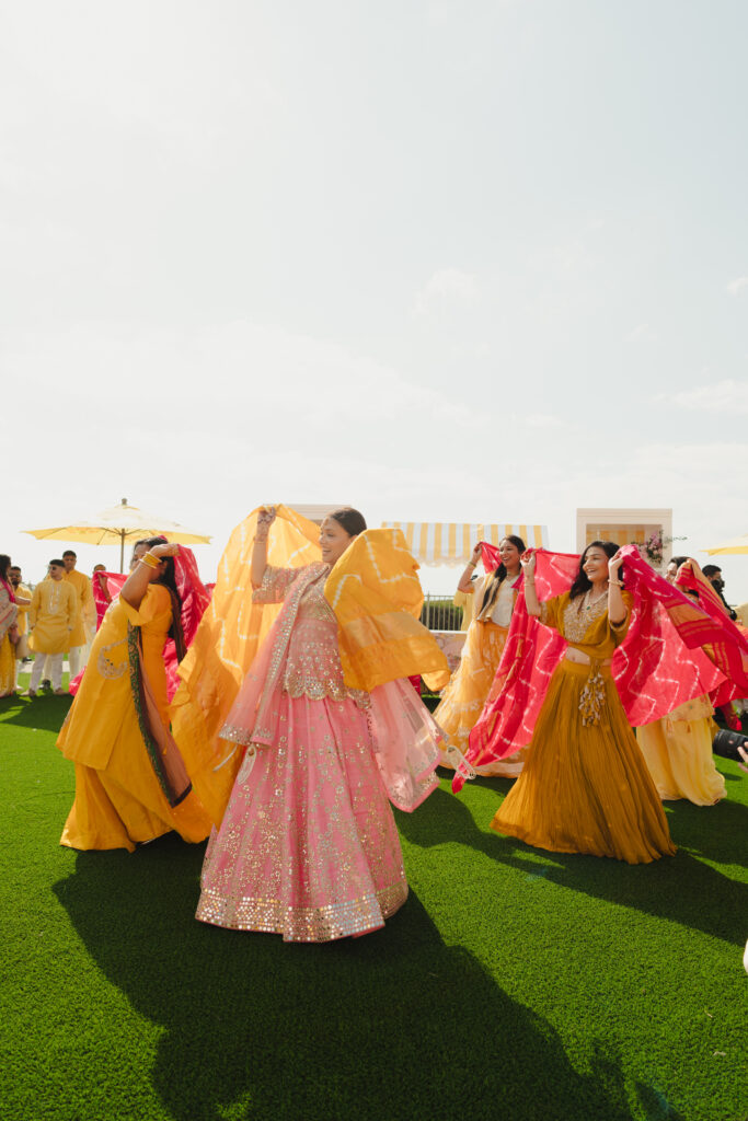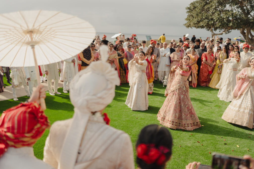 As the sun dipped into the Pacific, the evening erupted into an impromptu dance party. “It felt like a little preview of the sangeet to come,” Milan shares.