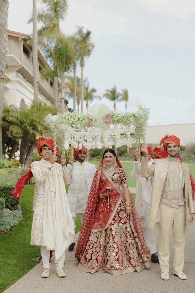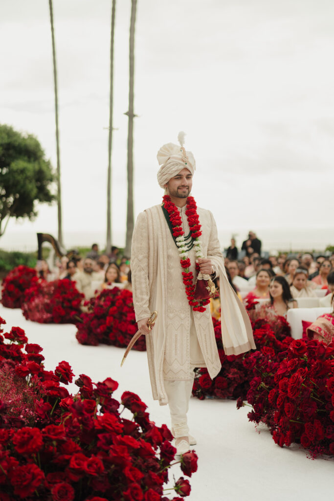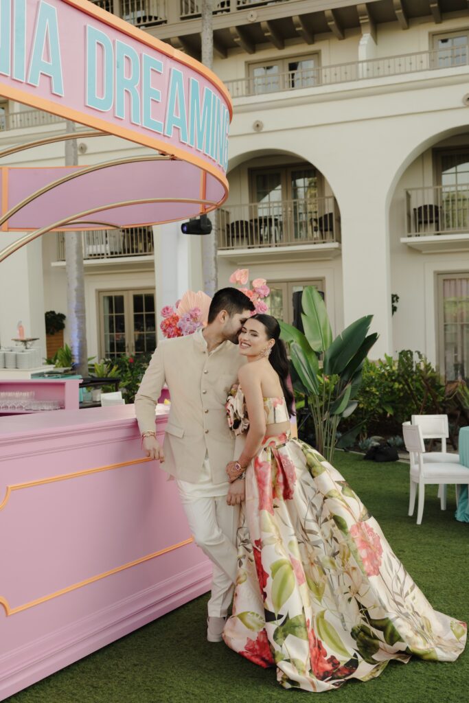 On a cliff overlooking the Pacific, Pearl Shah’s wedding unfolded like a couture collection come to life. A doctor who earned her Doctor of Medicine while simultaneously completing an MBA, Pearl was once on track for a residency in plastic surgery. Yet somewhere between hospital rotations and business plans, another calling grew louder. She built Cohinoor & Co., a high end natural diamond and gemstone jewellery boutique. After graduating from medical school chose to pursue fashion and entrepreneurship full time. That fearless pivot defined not only her career but her wedding aesthetic. Each event became its own fashion chapter, inspired by iconic houses. Louis Vuitton’s California Dream shaped the welcome party, Gucci Flora infused the haldi, Chanel’s Dripping in Pearls inspired the sangeet, and Cartier set the tone for an unforgettable wedding dinner. This was not simply an Indian destination wedding in California. It was a fashion-forward love story told through craftsmanship, couture and custom details.