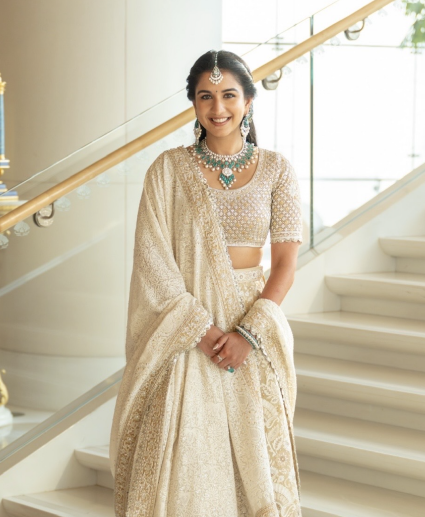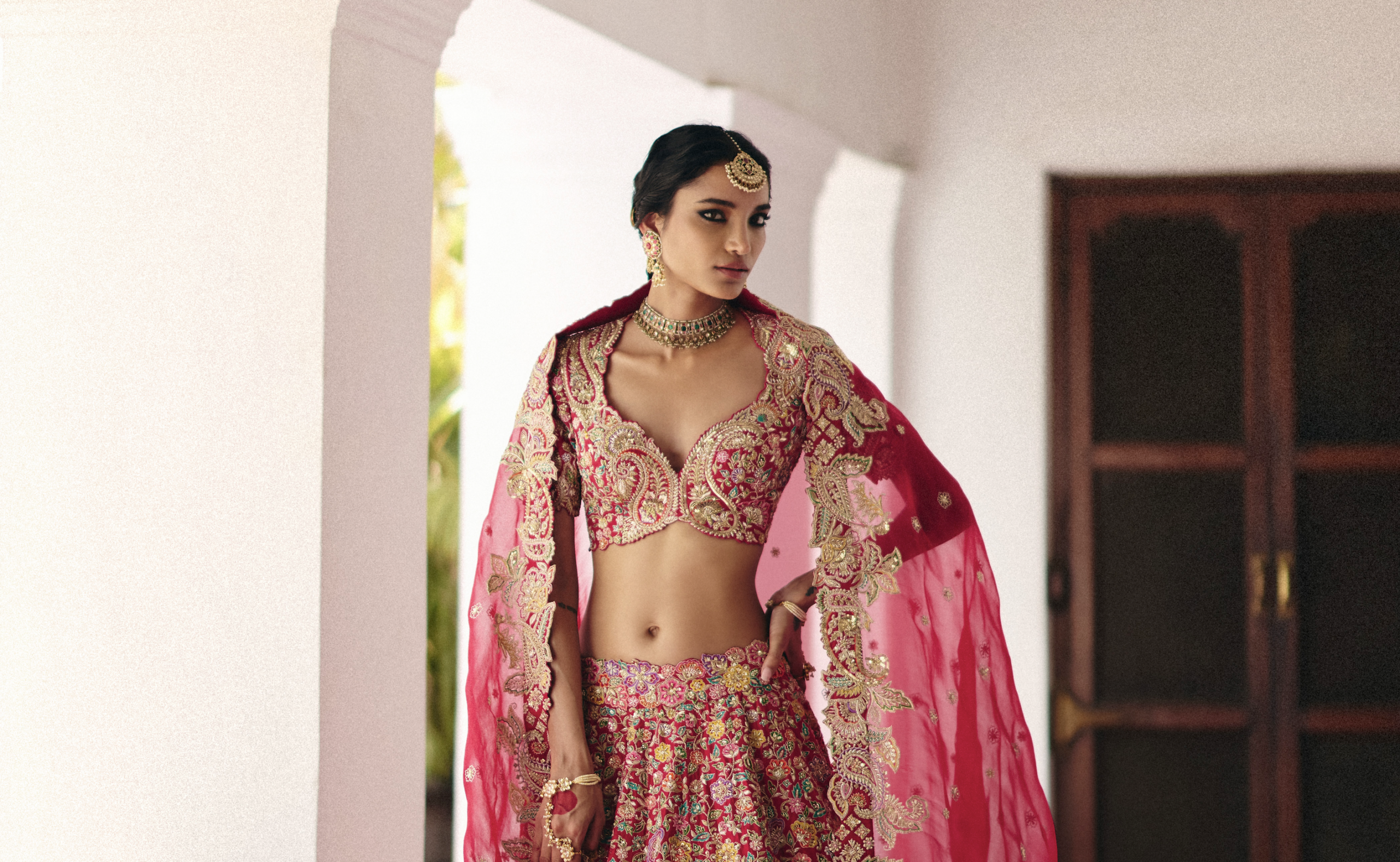 If the lehenga or sari is the grand overture, the blouse is the crescendo. It is the pièce de résistance that steals the show. Yes, you may obsess over surface ornamentation, sleeves, shade and silhouette (as you should), but if there is one element that reigns supreme over all details it’s the neckline. It frames the face and finishes the fantasy. The right cut can soften angles, elongate the neck, spotlight the collarbone and dictate everything from your bun to your blowout. The neckline also decides whether you’re reaching for a regal choker or heirloom rani haar.