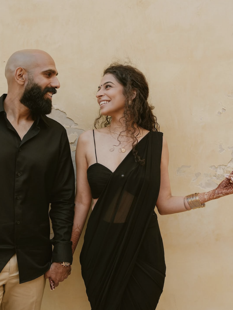 Resham, a Spain-born Sindhi and now a technology consultant in London, met Shivraj, a business consultant from Berkshire, in 2018 through a mutual connection at work. On paper, their worlds were different: island life in Gran Canaria versus city life in Slough, Sindhi roots versus Punjabi heritage. In principle, they were aligned on the things that mattered most: “We value family above all else, cherish good food, and shared the same outlook on loyalty and love.” The proposal came in November 2021, in the mountains of Gran Canaria, a place Resham had once described as her place of peace to Shivraj. He set it up himself with fairy lights and candles, and she answered immediately: “Of course, man.” The years that followed were shaped by life milestones, including building their home and navigating the sudden loss of Resham’s father and Shivraj’s grandmother. Original wedding plans faded. When Resham felt ready again, in late 2024, she approached planning not from obligation but from clarity: “While the wedding would look different without my dad physically there, I knew this was what he would have wanted for us.”