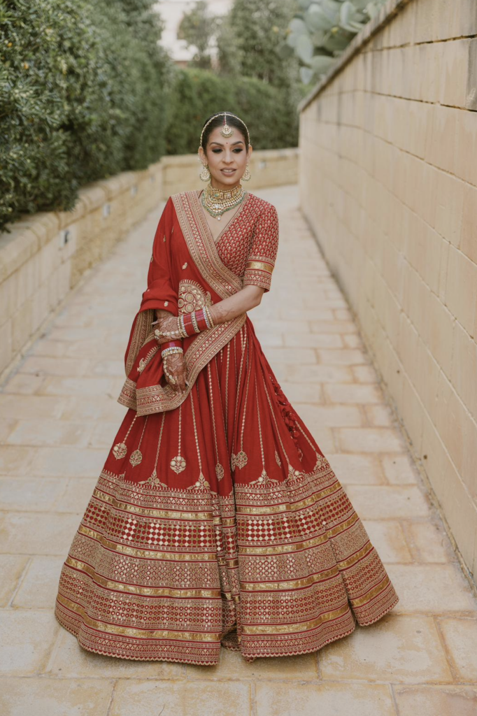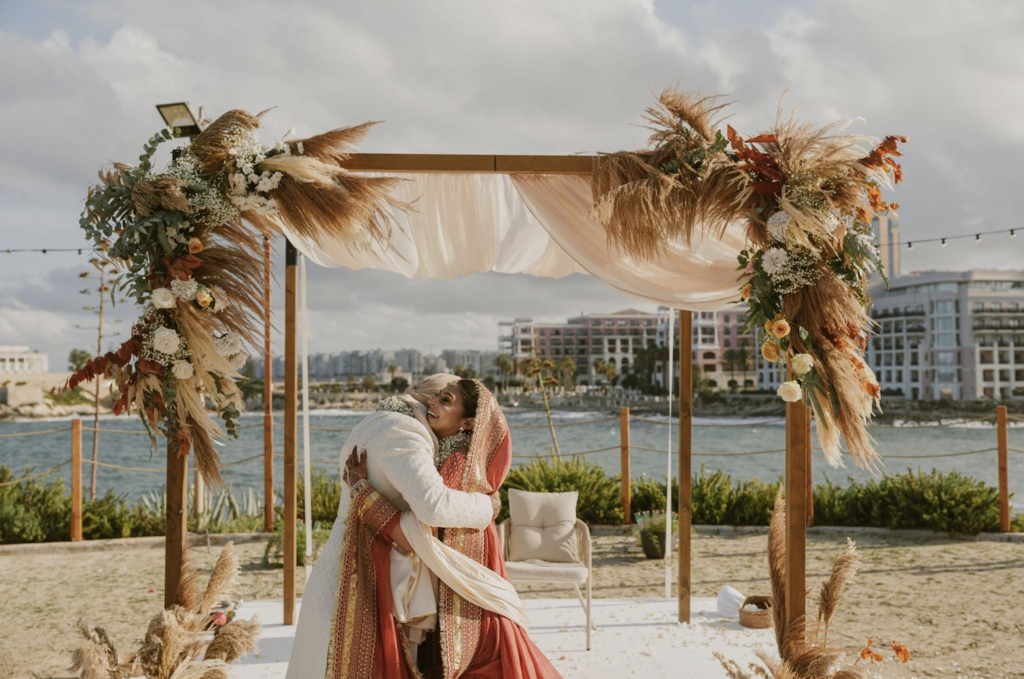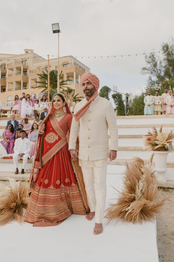 Resham and Shivraj didn’t want to rush the planning process. “The lead time became a gift,” they explain. Choosing planner Radhika Nathwani of Radhika & You came down to their first conversation. Radhika conducted extensive research across several European countries before the couple landed on Malta. “At no point did our vision feel compromised,” Resham recalls. “Even when certain locations couldn’t offer everything we were looking for, Radhika continued searching.” When they finally stood in the al fresco amphitheatre at the Corinthia St George’s Bay, she felt a full-circle moment. “As a newly engaged woman in 2021, I had always imagined an outdoor amphitheatre setting, then quietly let go of the idea. Malta brought it back.” Radhika reflects, “The heart of the vision was to create something that felt unmistakably theirs.”