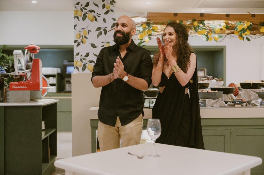 The celebrations began on October 17 with a welcome dinner. It was meant to be a simple gathering, but became a lively evening filled with connection and celebration. “The aesthetic was relaxed and Mediterranean. The venue carried the design: woven rattan pendant lights, olive-green accents and soft architectural curves. The colour palette drew from the Mediterranean landscape: olive greens, coastal blues, terracotta tones. We had long communal tables so everyone could mingle. It felt like an elevated family gathering rather than a formal event.”